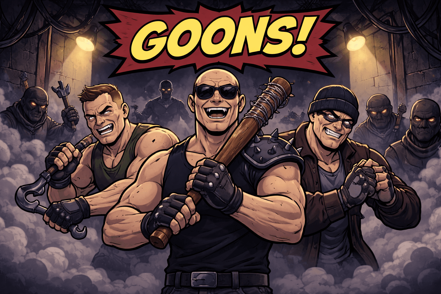 When I was growing up, a “goon” was a villain’s henchman. Before the hero got to fight the villain and save the world, he had to make his way through the villain’s goons.